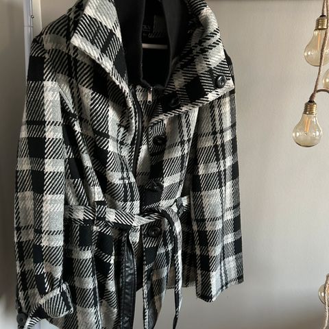 Selger en flott Jakke i str small fra merket Guidance. Bouclé / tweed stoff i rutete / skotskrutete sort og hvit farge med sølvtråder. Den ble dessverre fort for liten til meg og har derfor kun blitt brukt én gang. Jakken har belte nederst som kan henge løst når den er åpen og festes når jakken lukkes. Utrolig elegant og flott jakke! Selges kr 100,- pluss frakt. Kan også hentes i Skien.