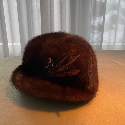 Pels hatt selges da den ikke blir brukt lenger. Pelsen er ekte rød-rev. Skinnet er ikke autentisk.