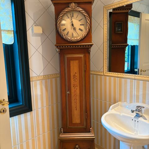 Antikt gulvur i jugendstil med pendel, lodd og kjede