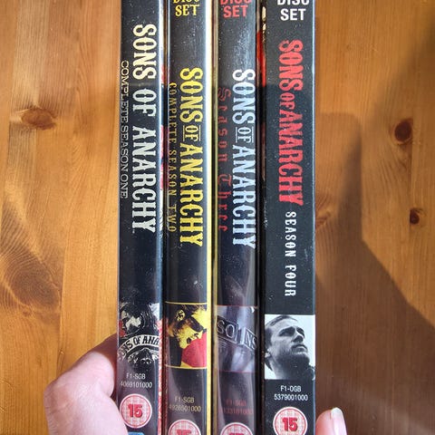 Sons of Anarchy SEASON 2 PÅ DVD boks med ekstra materiale. Inneholder 4 DVD-plater med HELE SESONG 2 av Sons of Anarchy.