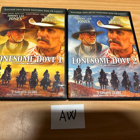 DVD sett med Return to Lonesome Dove del 1 og del 2. Inneholder westernfilmene med skuespillere som Tom Berenger og Barbara Hershey. DVD-ene er i standard størrelse og passer for samlere eller filminteresserte.