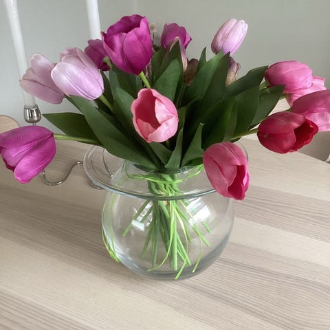 Utrolig dekorativ med én vakker blomst i. Jeg har hatt vasen i minst 15 år, men den har vært svært lite brukt.