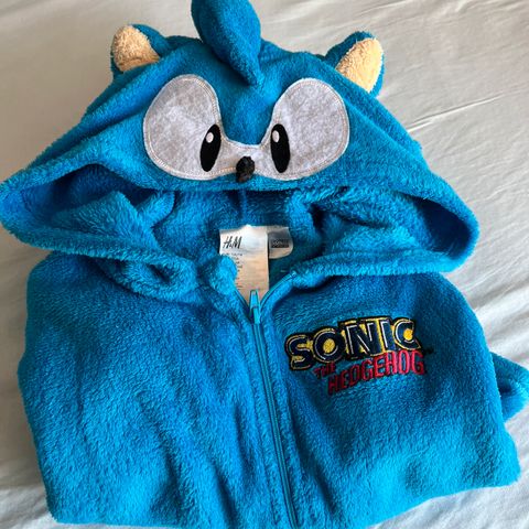 Blå Sonic kosedrakt str 110/116 i deilig plysjstoff, pluss grå hettejakke med Sonic motiv på rygg i samme størrelse selges. Begge har vært veldig godt likt her i huset, og søker nå ny eier.