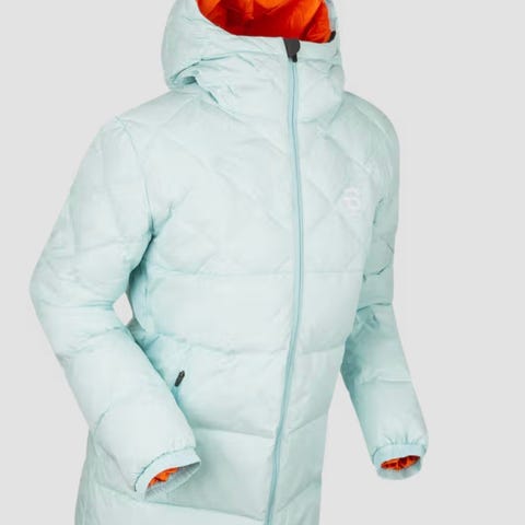 Jakken er i et vind- og vannavvisende materiale og er fôret med 80% dun og 20 % fjær. Den har en høy hals med innvendig fleecefôr og en formsydd hette som gir god isolasjon, samt en glidelås i front med en behagelig hakebeskytter i fleece.