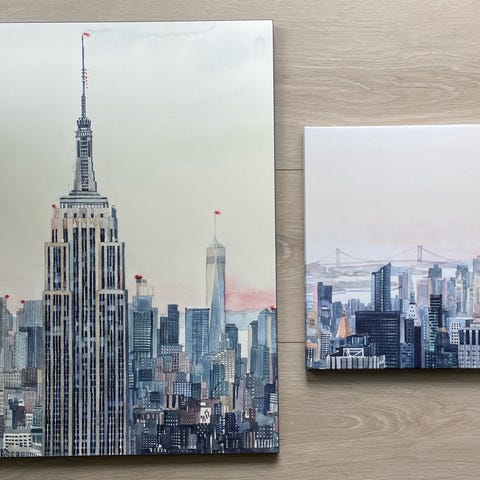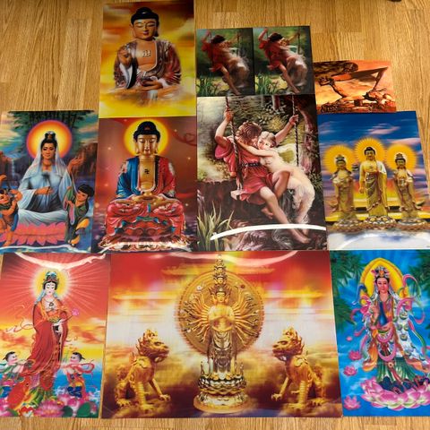 Sett med 3D bilder som viser kjente landemerker: Statue of Liberty, Eiffeltårnet, og Colosseum. Bildene har realistiske motiver og passer til dekorasjon i hjem eller kontor - str 35 x 25 cm