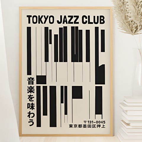Selger dette trykket av Tokyo Jazz Club kunst som er klar til å rammes inn dersom du ønsker det.
