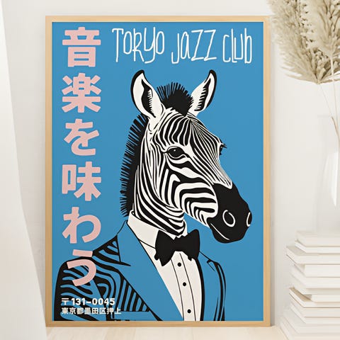 Selger dette trykket av Tokyo Jazz Club kunst som er klar til å rammes inn dersom du ønsker det.