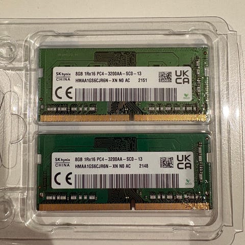 Selger et sett med kvalitetsminne fra SK hynix – totalt 64GB (2×32GB) DDR5 SODIMM. Perfekt oppgradering for nyere bærbare PC-er, mini-PCer og Intel/AMD NUC-systemer som støtter DDR5.