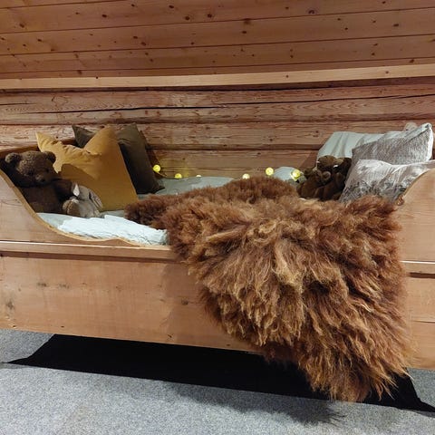 Dobbeltseng i lakkert flammebjørk