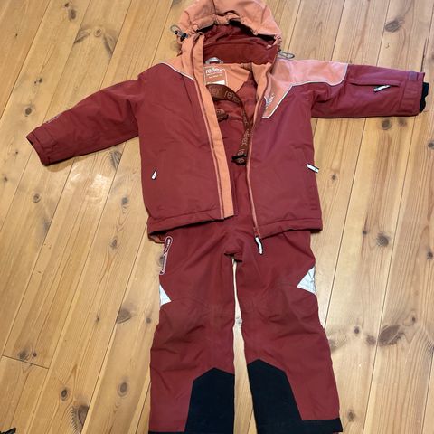 Reflex jakke og utebukse brukt av 2 barn. Noe synlig slitasje i rumpen og knær. Ellers kan buksen trenge en vask.
