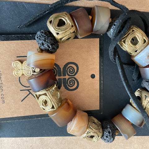 Eksklusivt smykkesett i stein og naturlig treverk, sølv og lærtau fra Chile til salg.