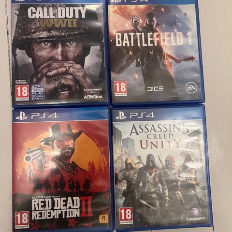 Rockstar Red Dead Redemption II og Call of Duty Black Ops III Playstation 4 spill. Spillene leveres i original emballasje med aldersgrense 18 år. Passer til Playstation 4 konsoll.
