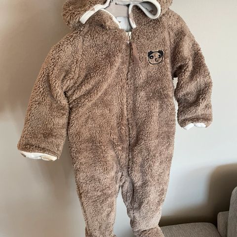 Brukt hvit teddydress med hette i str 68. Noe nupper på dressen.