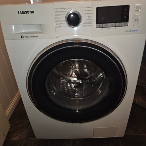 Vaskemaskin fra Samsung med ecobubble teknologi og 8kg kapasitet. Kjøpt ny i 2018. Maskinen er tømt og rengjort. Må hentes Oddeskogen 73 Evje.