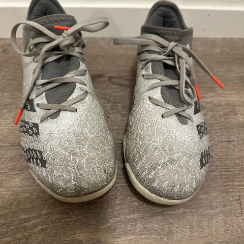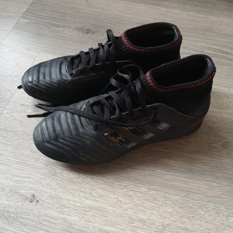 Adidas Predator fotballsko i blå og oransje farge. Skoene har knotter på yttersålen egnet for kunstgress og gressbaner. Størrelse 34. Materialet består av syntetiske tekstiler og gummi. Passer for fotballspillere som trenger sko med god grep og komfort. Turf knotter som er snillere for unge fotballspillere