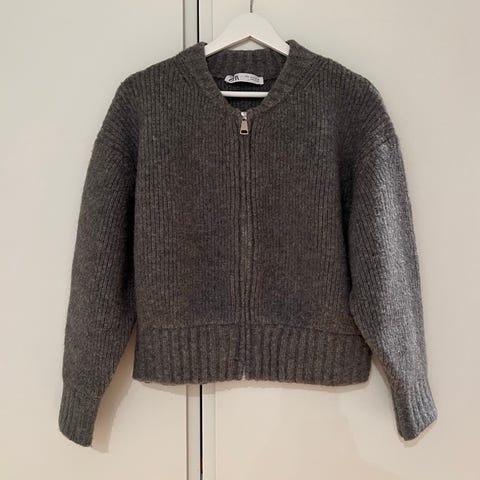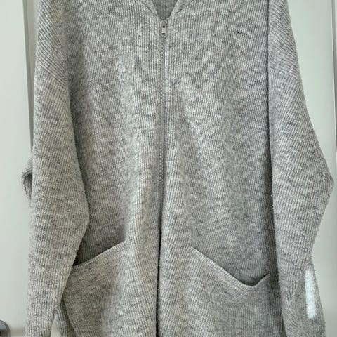 Myk og lett strikket jakke. 2 lommer m glidelås. Brukt kun et par ganger da den ble litt liten for meg:(