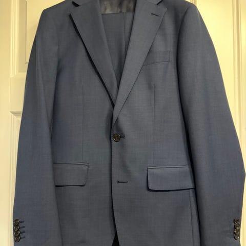 Tiger of Sweden Jerrets dressjakke og -bukse i blåfarge, herremodell i størrelse 46 (reg). Dressjakken har klassisk snitt med to knapper.