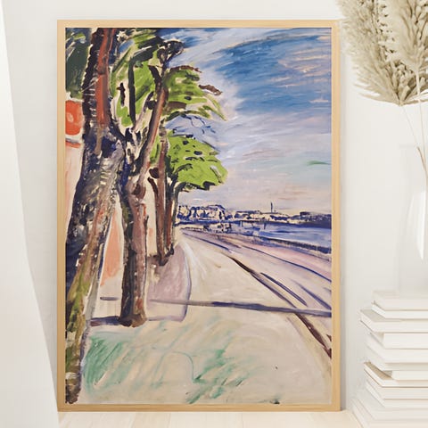 Selger dette trykket av Edvard Munch kunst som er klar til å rammes inn dersom du ønsker det.