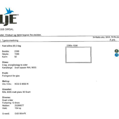 2 vinduer. Se mål på bilde. Prisen er for ett vindu.