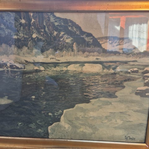 4 stk flotte bilder fra Slaget ved Fossum bru i 1940. Kunstner A.H. VEIBY. Samt boka Den gang dag.
