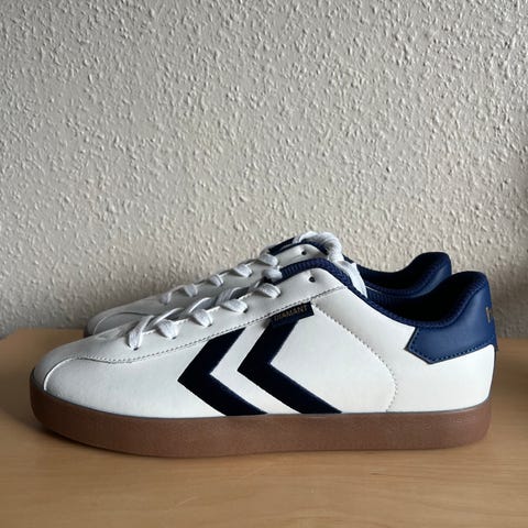 Pent brukte sko fra Hummel størrelse 39. Opplevd som normale i størrelsen. Tror jeg har brukt disse 5-6 ganger da de dessverre ikke helt passet foten min.