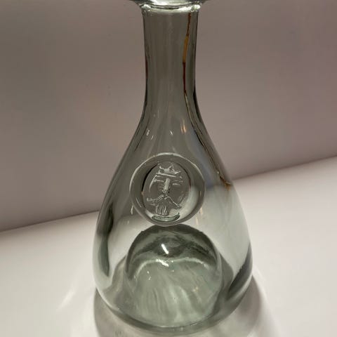 Koboltblå dekanter/karaffel designet av Ole Winther i 1955 for Holmegaard i Danmark. Disse ble produsert til midten av 70 tallet. Høyden er 23 cm, diameter 21 cm.