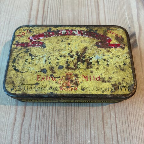 Søkeord: Samleobjekt, The Carter Mixture Extra Mild, tobakk, eske, boks.