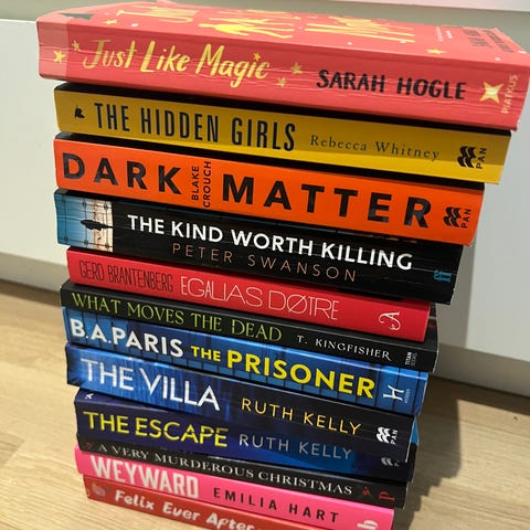 De fleste bøkene i bildet er på engelsk, med et par unntak. 50kr pr paperback, 40kr hvis du kjøper tre eller flere. 70kr pr hardcover, 50kr hvis du kjøper tre eller flere. Tittel, sjanger og tilstand er listet her: