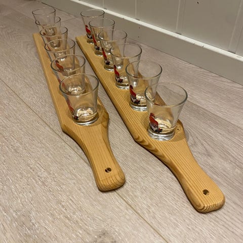 Drinkbrett med 6 shotglass – ubrukt // ✅