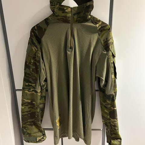 Har en litt eldre Desert ARMY USA kamuflasje bukse som jeg ikke har bruk for lenger. Den er i str 56. Snøring nederst på begge ben. To store sidelommer. Godt slitesterkt stoff, men kan være litt kald på vinteren, så anbefaler stilongs under denne på vinteren. Skal i teorien være "vann avstøtende" og vanntett. Selges for 500kr.