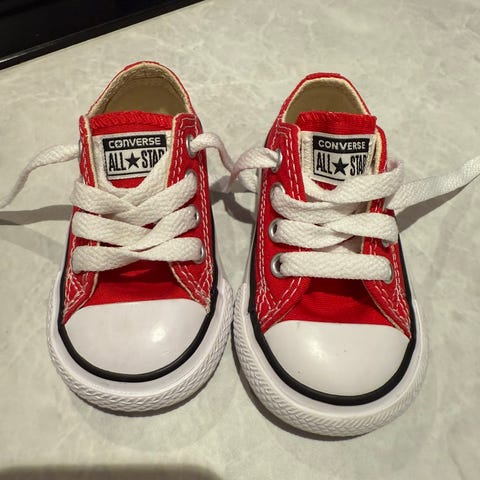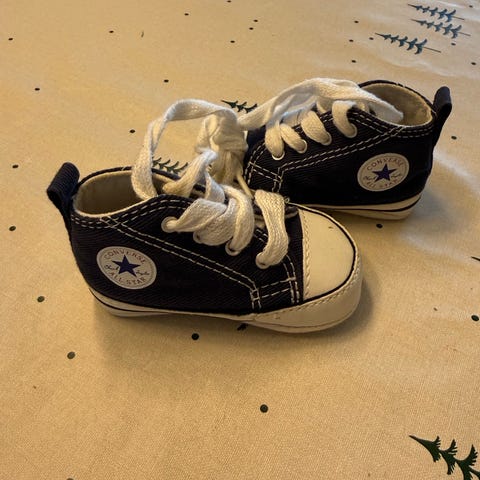 Converse First Star barne sneakers i størrelse 17, navy farge. Skoene er laget i tekstilmateriale med gummisåle. Passer for unisex barn. Aldri brukt, kommer i original emballasje