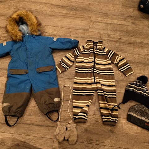 Reflex vinterdress, str 80. Den har en påbegynnende hull under glidelåsen, men er ellers hel og pen.