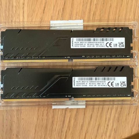Selger et sett med Kingston Fury Beast DDR4 32 GB (2×16 GB) 3200 MHz.