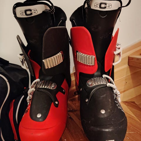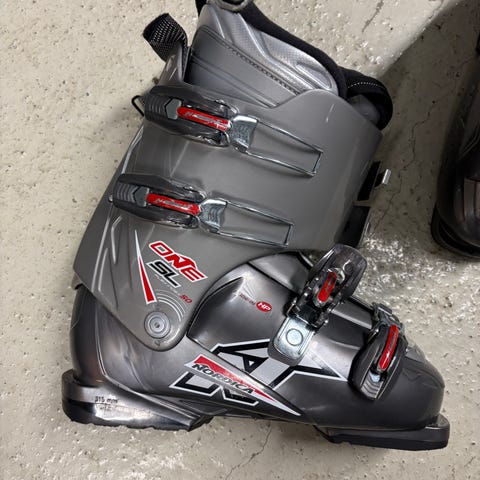 Diverse størrelse alpinstøvler og alpinski. Prisene på bilder.