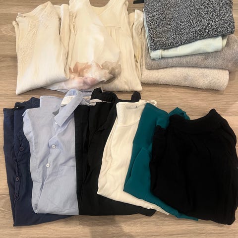 Selges da desse er for store til meg , klærne er i vanlig str M. Kun genseren og merke blusen brukt litt mer.