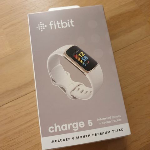 Usb-lader til Fitbit Charge 5, og et par ekstra remmer i størrelse L