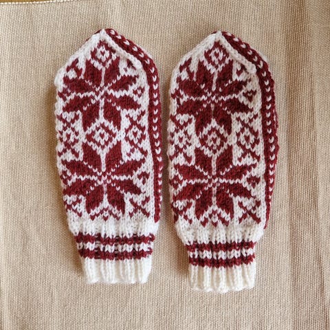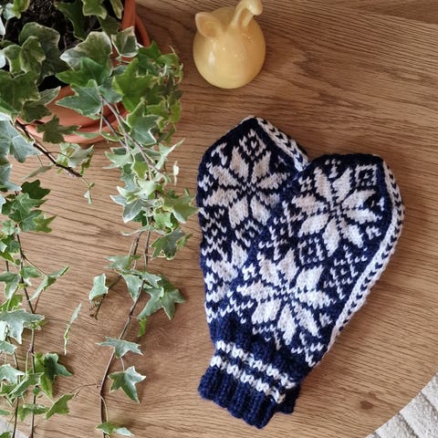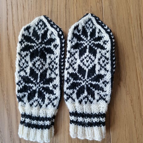 Hjemmestrikkede votter i deilig ull.