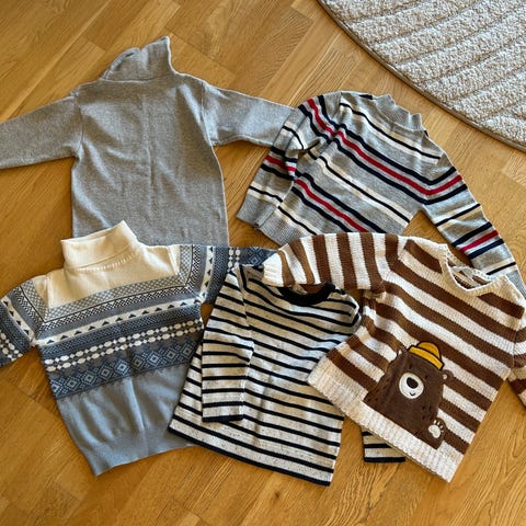 Sønnen min har vokst fra disse genserne. På den lysegrønne genseren er det et lite hull som må repareres (se bilder). Trenger en ny eier. Pris for alle er 350kr.