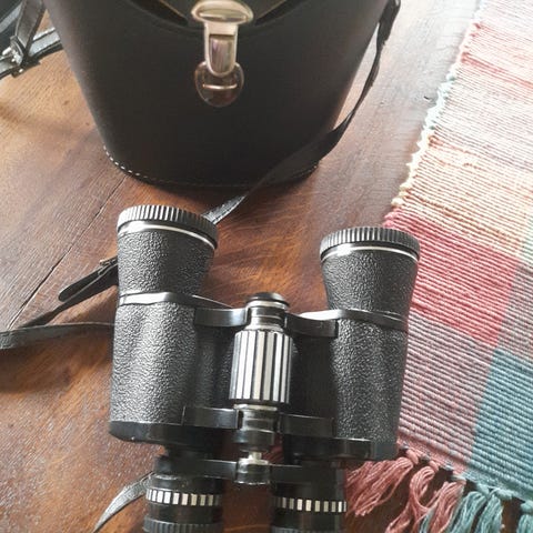 I fin stand, antakelig fra slutten av 60-tallet. I tilsynelatende original eske. Optikken er bra etter 60-tallsstandard, men selvsagt ikke noen Swarovski. Produsert i Japan. Se bilder.
