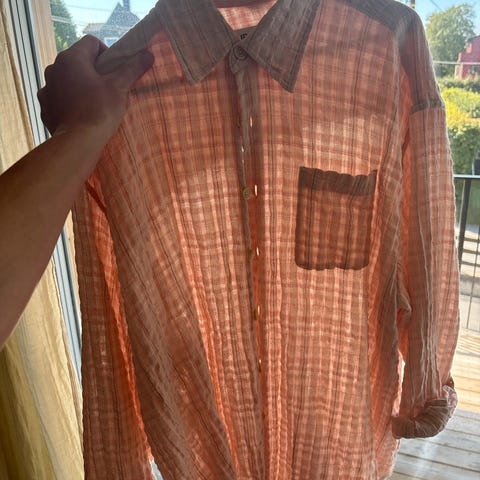 Fargen er solbleket noen steder som gjør den gulaktig, hovedsakelig langs kragen og ved ermene.