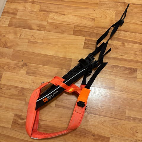 Kraftig og bra bånd med messingkroker. 170 cm slakt, 260 utstrakt.