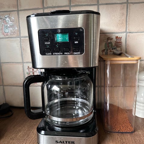 Søt liten, sort kaffetrakter med glasskanne og måleskala. Utstyrt med filterholder for enkel påfylling. Passer til hjemmebruk eller mindre kontormiljøer. Lite brukt, fungerte som den skal sist den var i bruk.