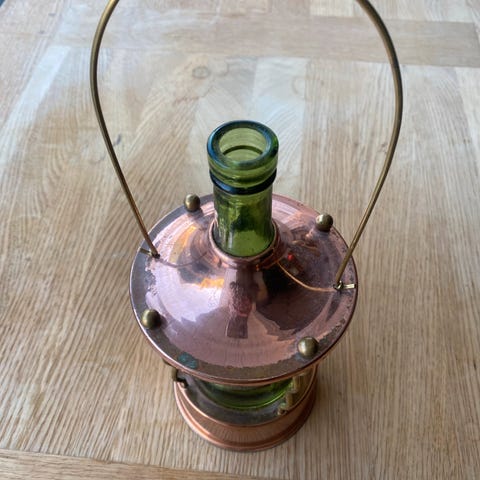 Vin eller champagne kjøler kjøpt til bryllup, den kan romme flere flasker , usikker på om den er ment som det eller til noe annet sikkert fin som blomsterpotte også ! Super fin bøtte i messing med hanker på siden , bør ses ! Kan sendes på kjøpers regning og risiko