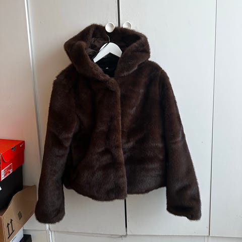 Selger en fin fuskepelsjakke fra Zara!Jakken har hette og glidelås. Fin til både hverdag og byturer.