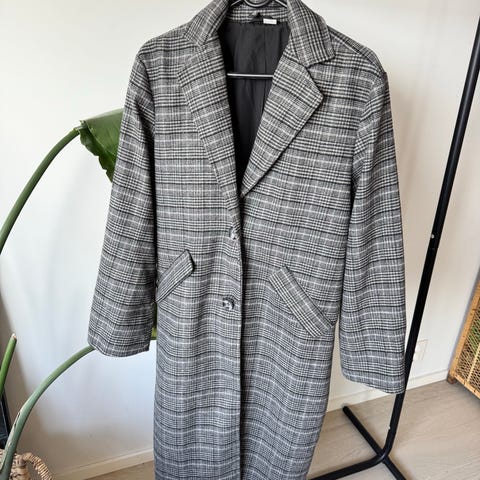 Kåpe fra H&M i beige farge, størrelse M for kvinner. Laget av 92 % viskose og 8 % polyester i ytterstoffet, med fôr bestående av 92 % viskose og 8 % polyester. Produktet har et belte for justering og knapper foran.