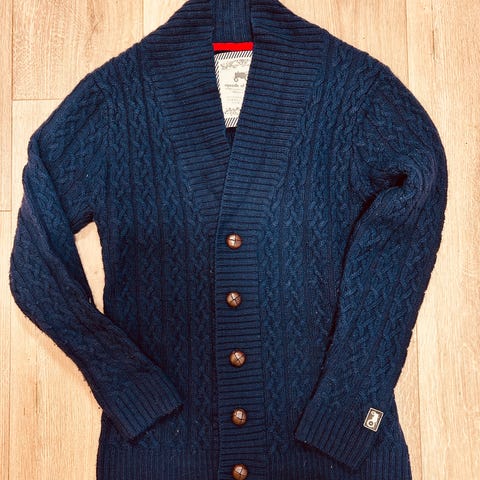 Tykk og varm ulljakke med flyffy innside, a la fleece eller noe men er ren ull.