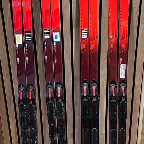 Racingski Atomic 2025 modell fra kontraktsløper selges, skate og klassisk.