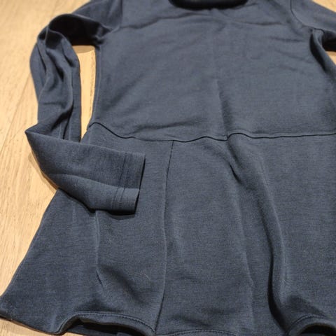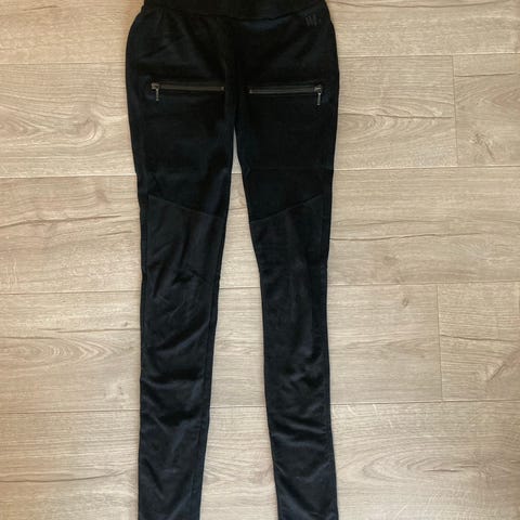 Pent brukt svart merino ull tights fra WolLand str L. Fløyelsdetaljer på siden av lårene. Den er kun brukt ett par ganger. En liten søm har raknet i sømmen ved utside lår og noen løse tråder innside linning. Begge deler er lett å sy -se bilde.