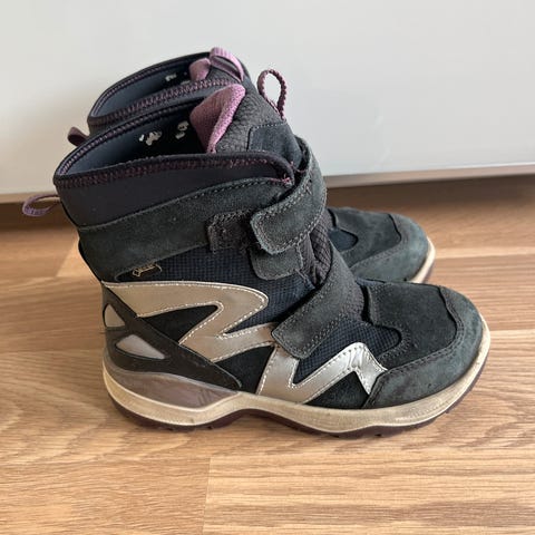 Selger et par gode og varme vintersko fra Ecco i str. 34. Skoene har Boa snøresystem som gjør de enkle å ta av og på. De har en solid gummisåle med godt grep, refleksdetaljer og gore-tex. De har falmet litt i fargen og er litt nuppete i foret, men masse bruk igjen!