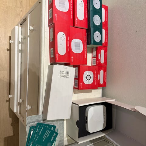 Selger en utvidet startpakke til Homely, helt ny og ubrukt. Hadde tenkt å bruke på hytta men satte opp et mye enklere system der. Dette systemet kan fint erstatte Verisure el.l